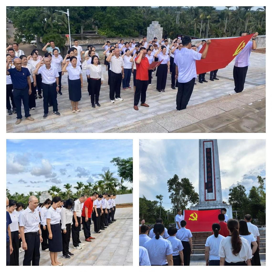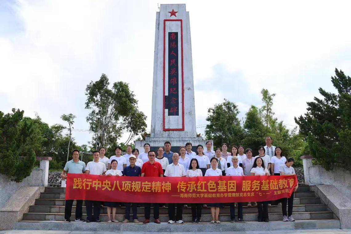 为深入贯彻落实中央八项规定精神,强化党风廉政建设,同时充分发挥党建引领作用,传承红色基因,提升基础教育教学质量。2025年6月29日,颜射 基础教育办学管理部党总支带领颜射 、附属幼儿园党支部,赴文昌市南阳人民英雄纪念碑、文城中心小学开展了“践行中央八项规定精神,传承红色基因,服务基础教育”的党建活动。并且将党建工作与教育教学深度融合 ,为基础教育高质量发展注入强劲动力。
