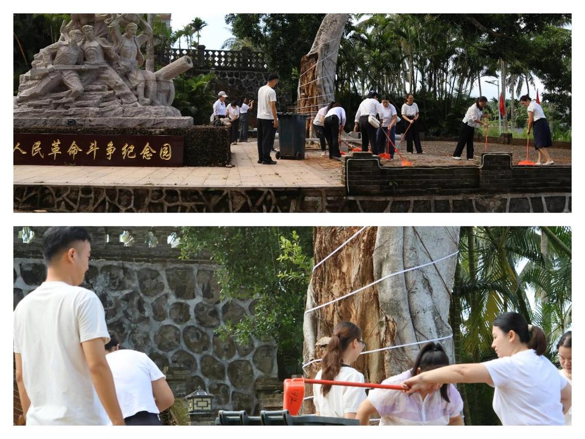党员同志们清扫革命斗争纪念园